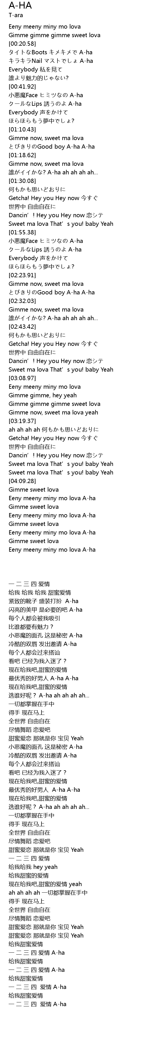 | [04:17.02] | Eeny meeny miny mo lova A-ha |