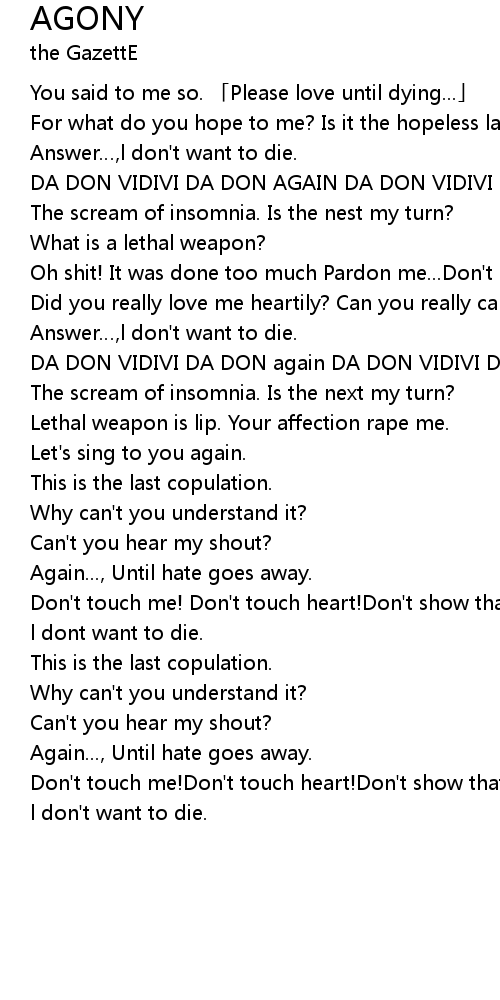 | Don't touch me!Don't touch heart!Don't show that face! | |