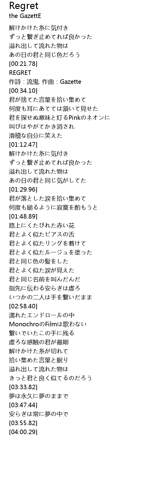 | [00:29.72] | 作詩:流鬼. 作曲:Gazette |