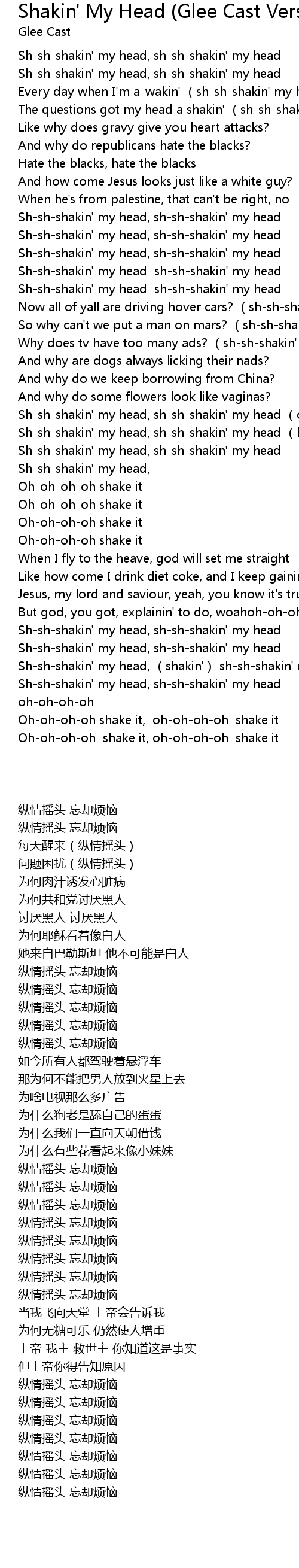 | [02:34.99] | Sh-sh-shakin' my head, sh-sh-shakin' my head |
