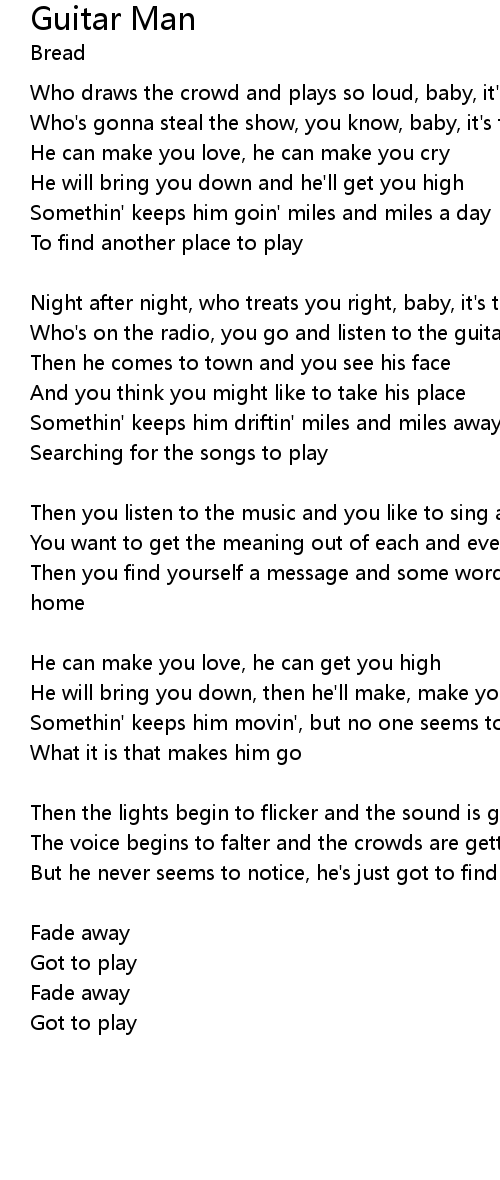 Who draws the crowd and plays so loud, baby, it's the guitar man |