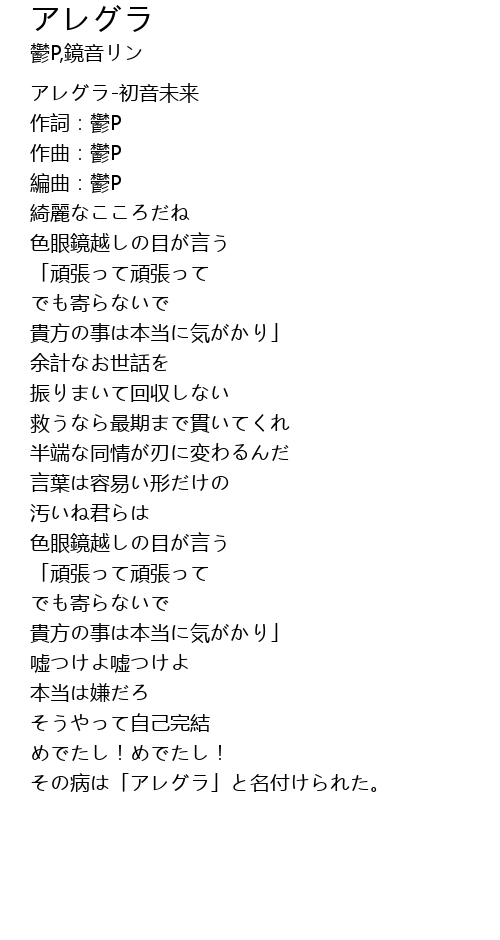 | [00:01.171] | アレグラ-初音未来 |