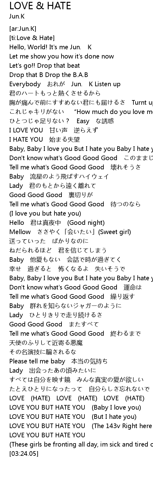 | [03:09.17] | LOVE YOU BUT HATE YOU (But I hate you) |