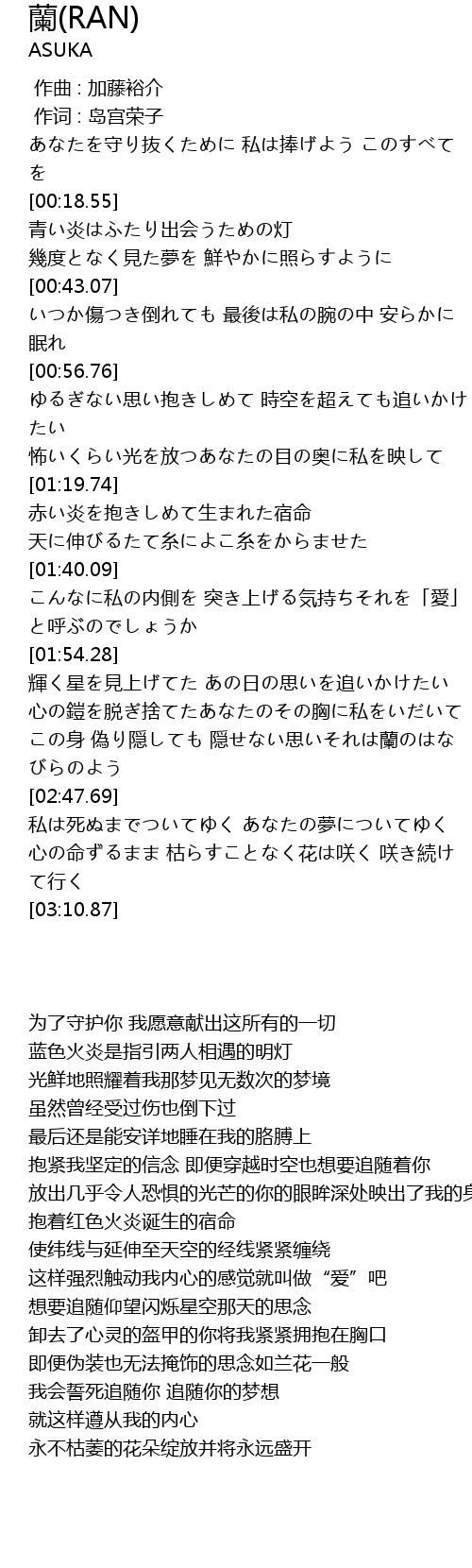 | [02:34.59] | この身 偽り隠しても 隠せない思いそれは蘭のはな びらのよう |
