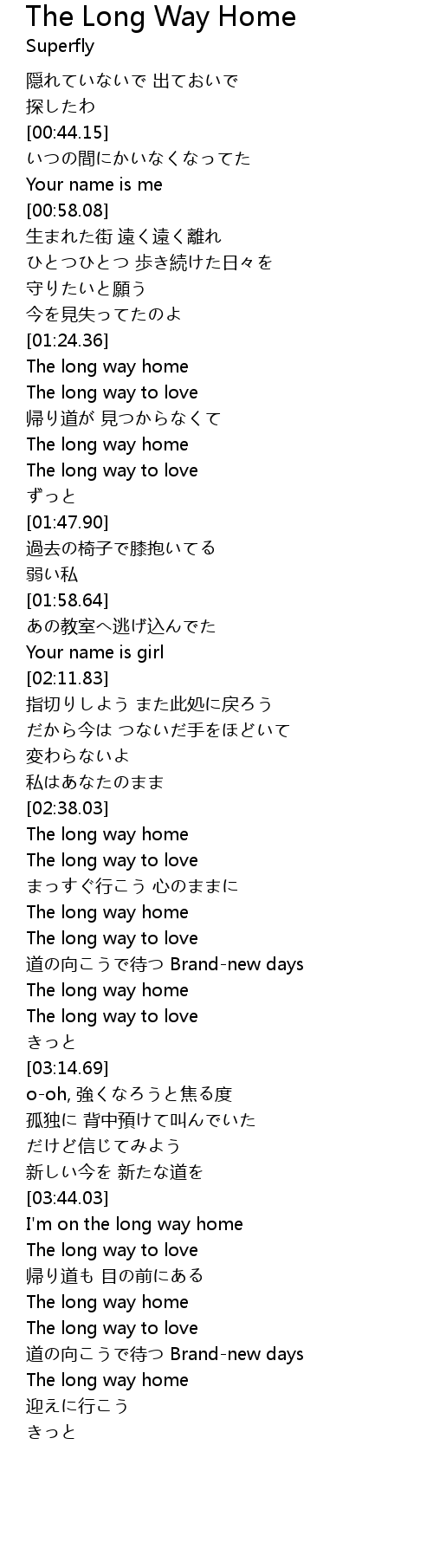 | [02:38.56] | The long way home |