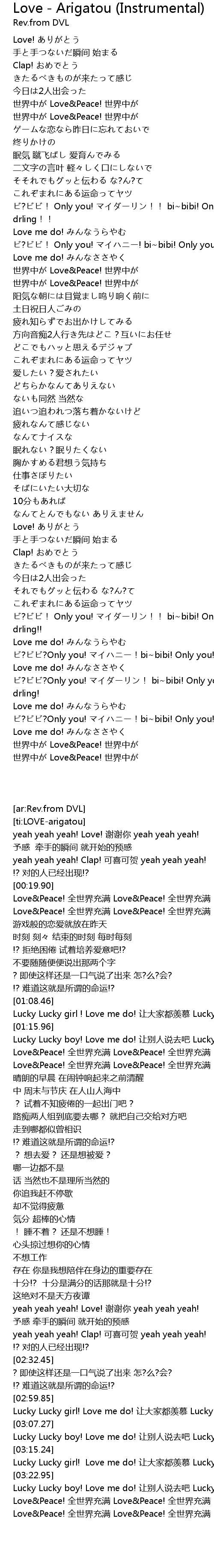 | [00:43.52] | 世界中が Love&Peace! 世界中が |