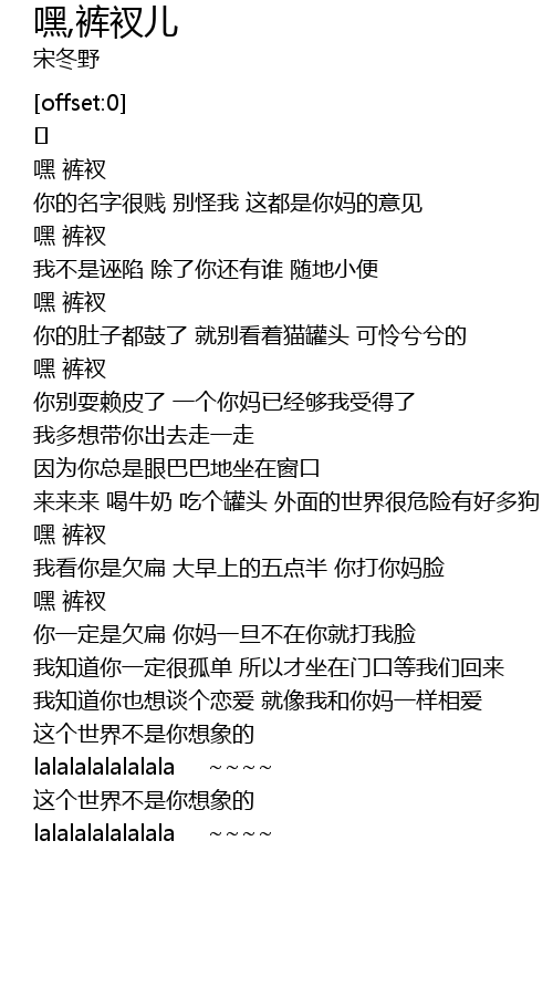 | [00:24.277] | 我不是诬陷 除了你还有谁 随地小便 |