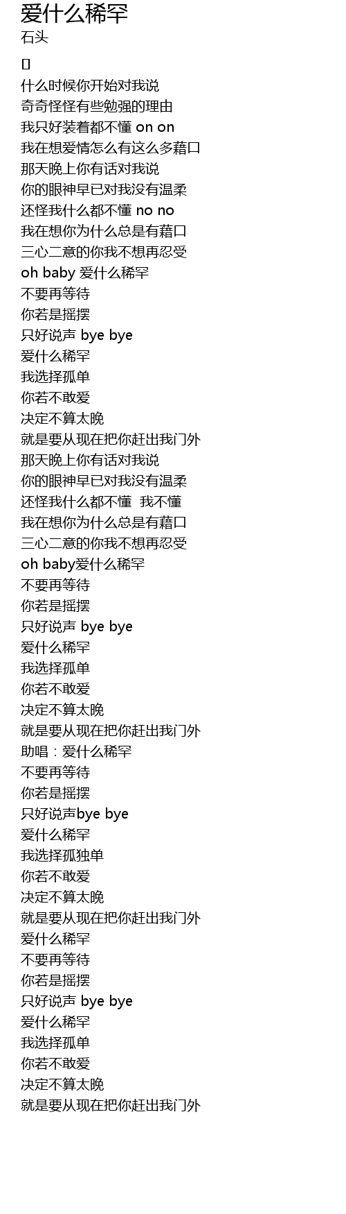 | [01:15.662] | oh baby 爱什么稀罕 |