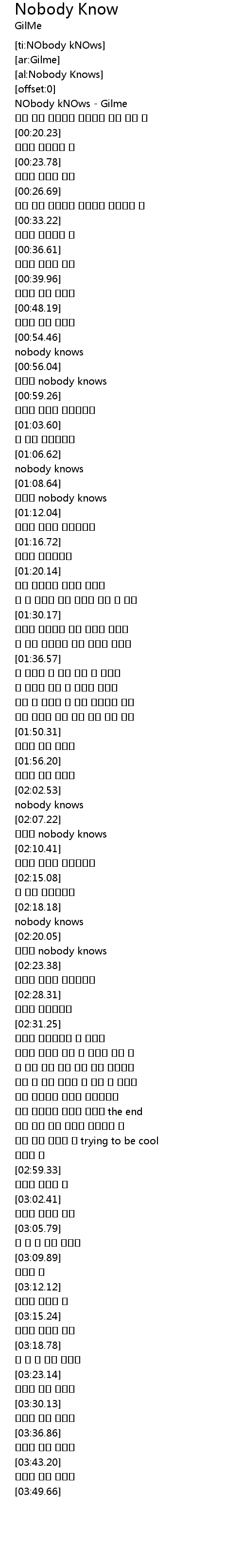 | [00:00.76] | NObody kNOws - Gilme |