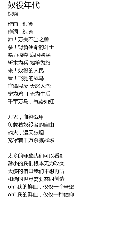 | Song | 奴役年代 |