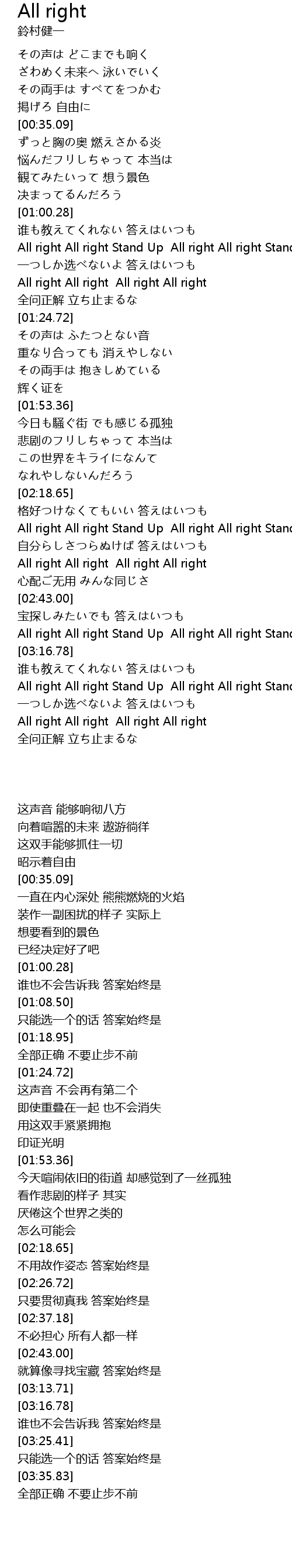 | [03:25.41] | All right All right Stand Up All right All right Stand Up |