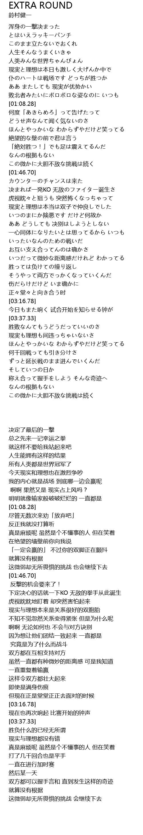 | [03:59.38] | ずっと延长戦のまま进んでいくんだ |