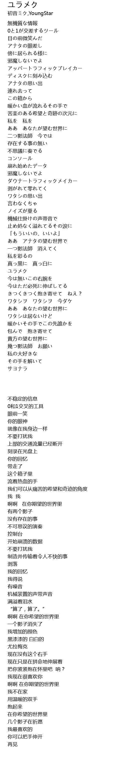 | [01:08.75] | 苦楽のある希望と奇跡の次元に |