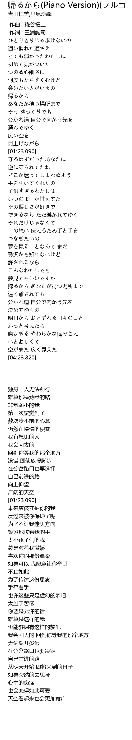 | [03:31.080] | 帰るから あなたが待つ場所まで |
