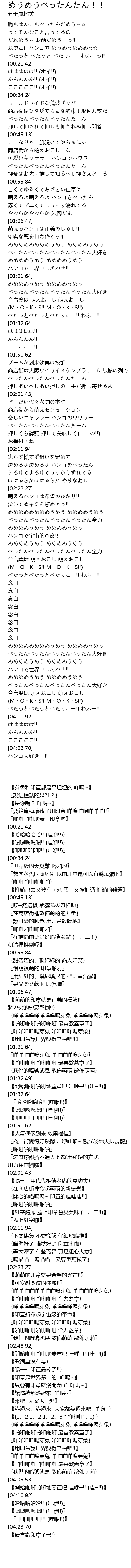 | [01:14.42] | ぺったんぺったんぺったんぺったん大好き |
