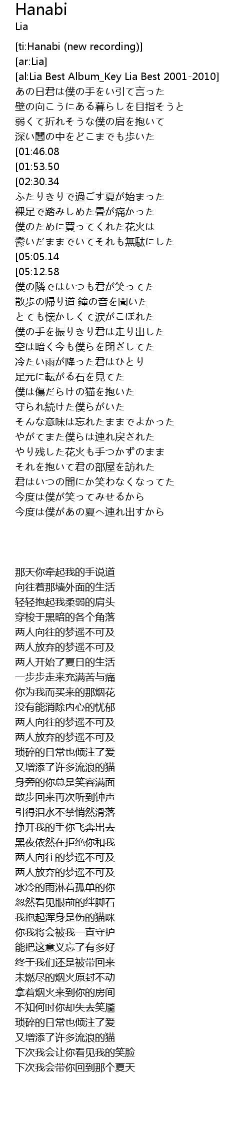 | [al:Lia Best Album_Key Lia Best 2001-2010] | |