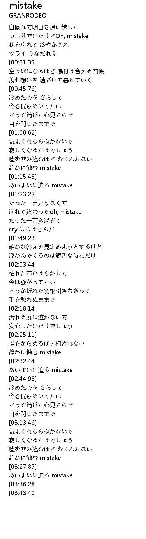 | [02:32.76] | あいまいに迫る mistake |