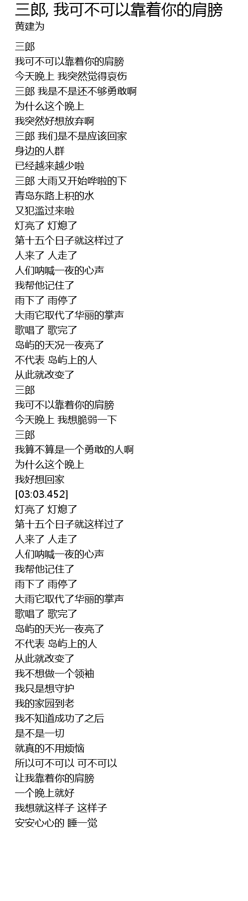 | [00:22.204] | 我可不可以靠着你的肩膀 |