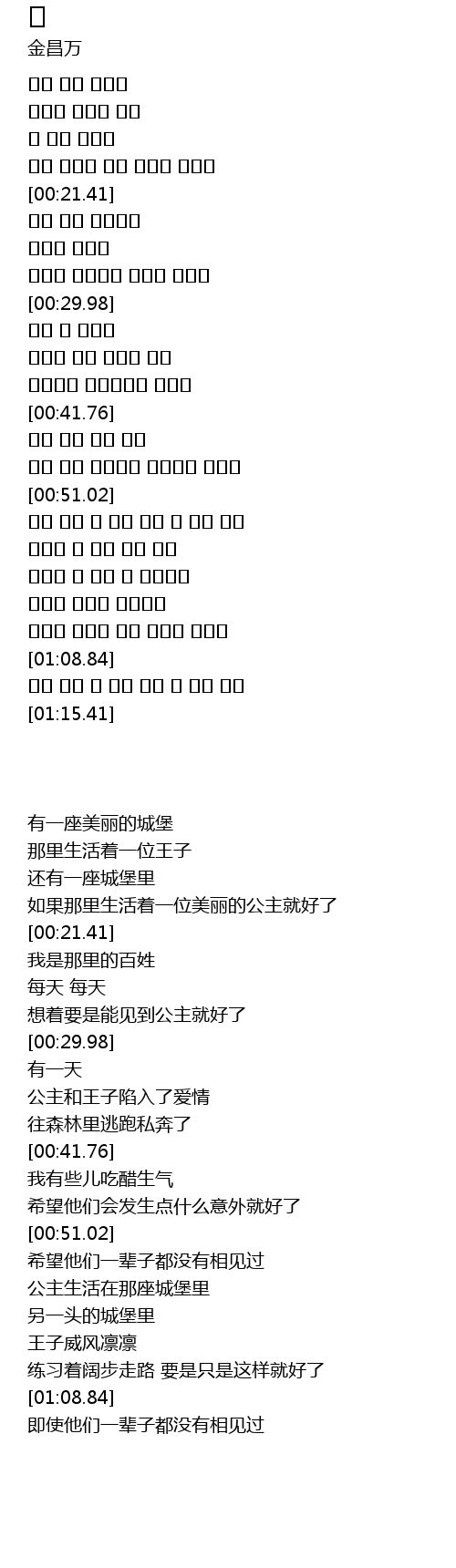 | [00:18.60] | 예쁜 공주가 살고 있으면 좋겠다 |