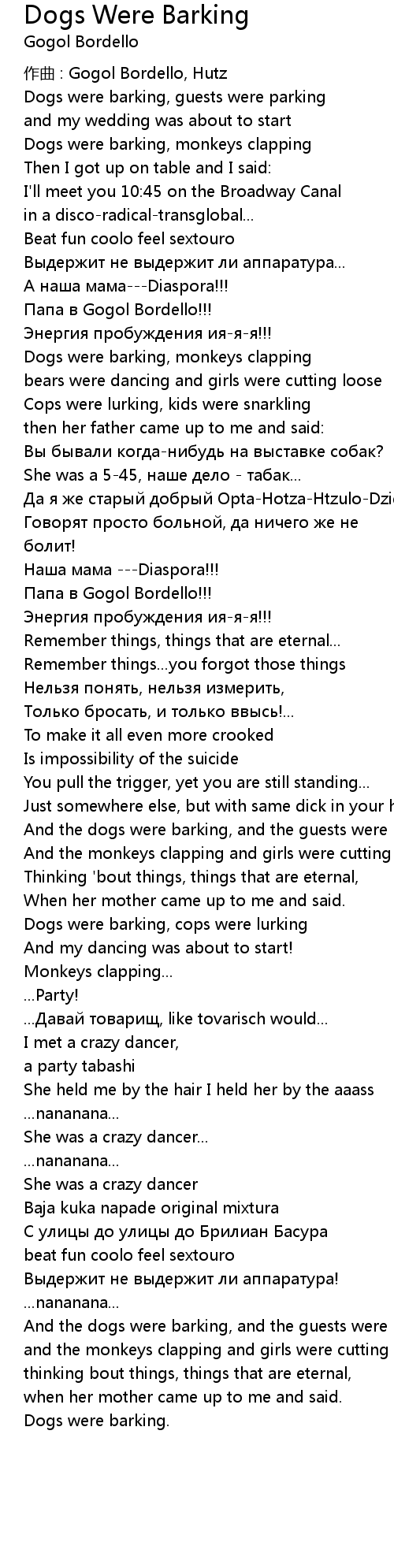 | zuò qǔ : Gogol Bordello, Hutz | |