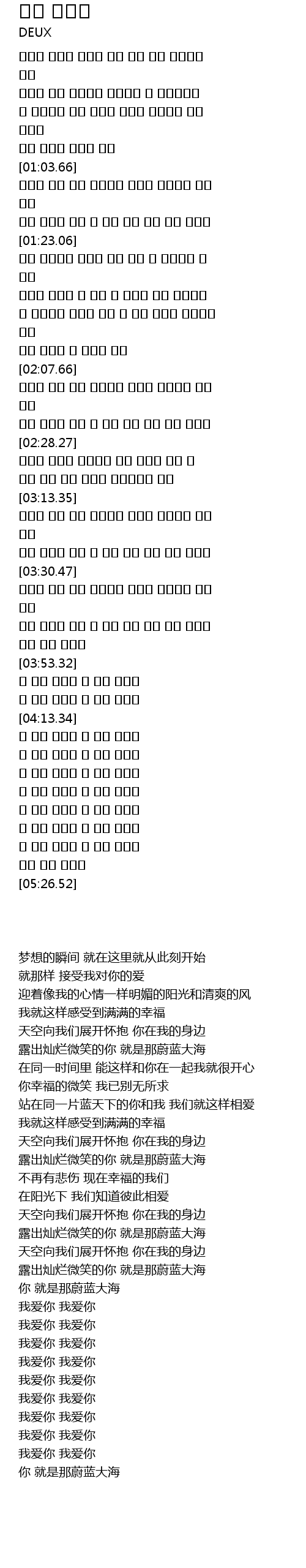 [01:50.61] 저 파란하늘 아래서 너와 난 여기 이렇게 사랑하고 있어