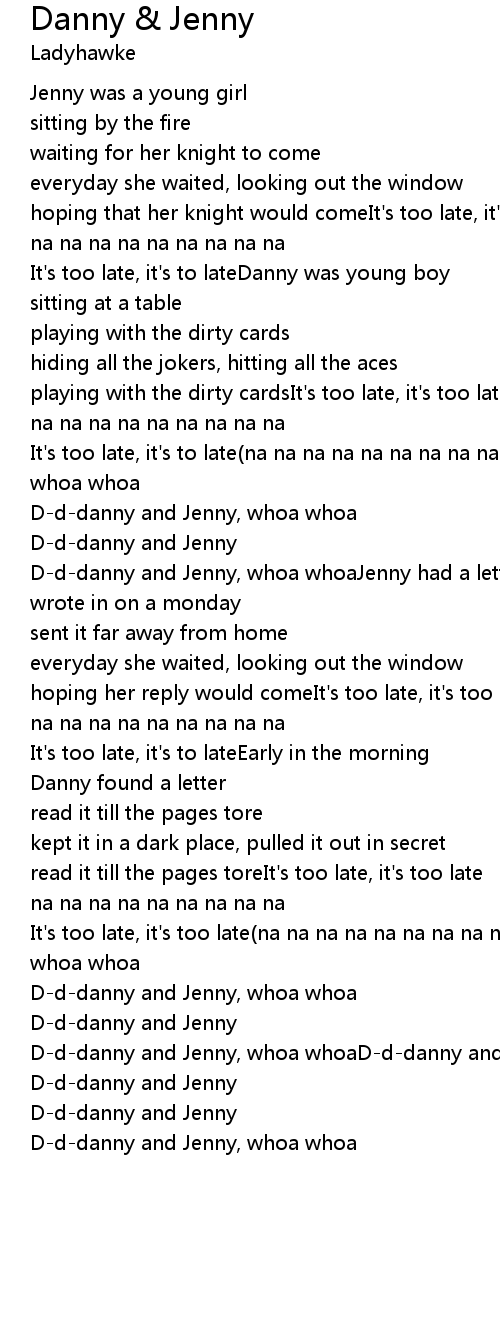 It's too late, it's to late(na na na na na na na na na x 4)D-d-danny and Jenny, whoa whoa |