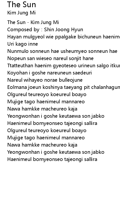 | [00:01.00] | The Sun - Kim Jung Mi |