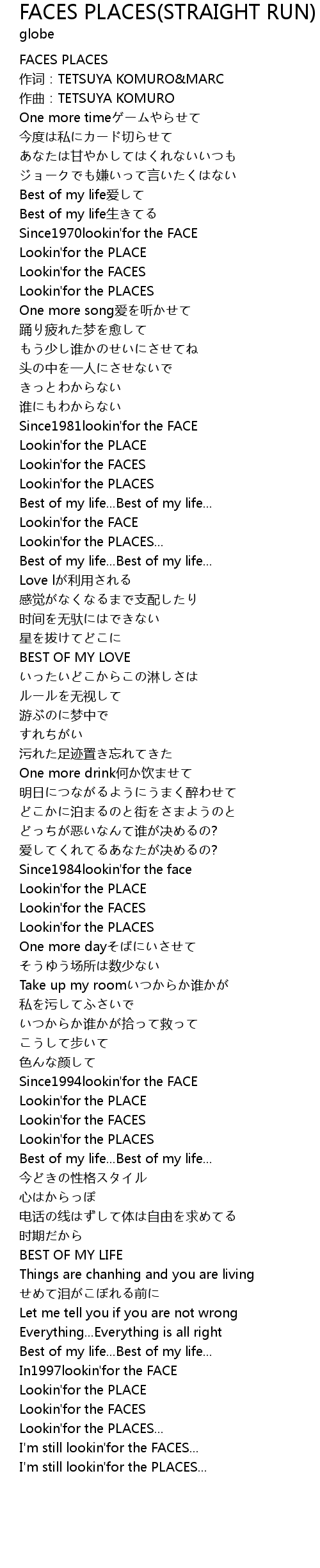 | Song | FACES PLACES(STRAIGHT RUN) |