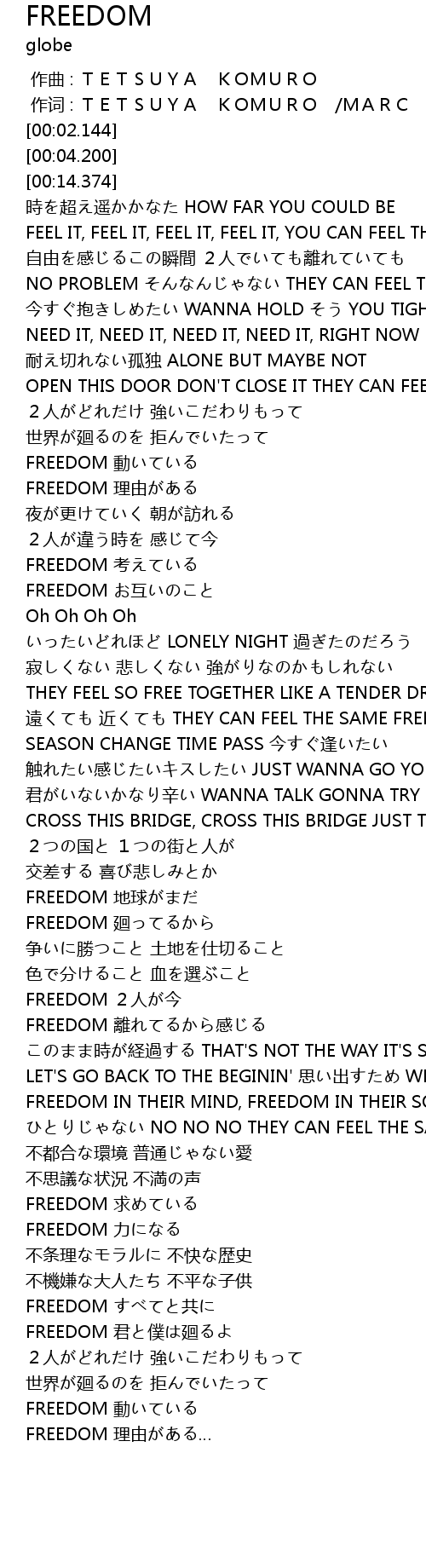 | [02:37.494] | FREEDOM 離れてるから感じる |