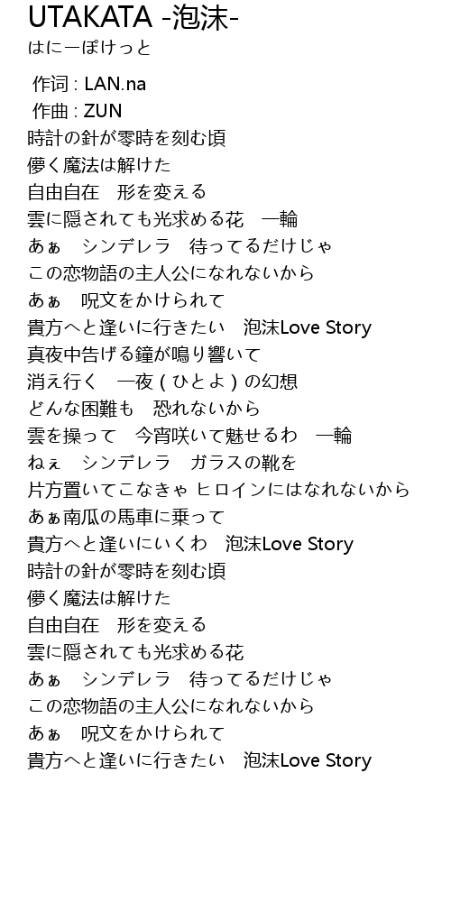 | [04:22.08] | 貴方へと逢いに行きたい 泡沫Love Story |