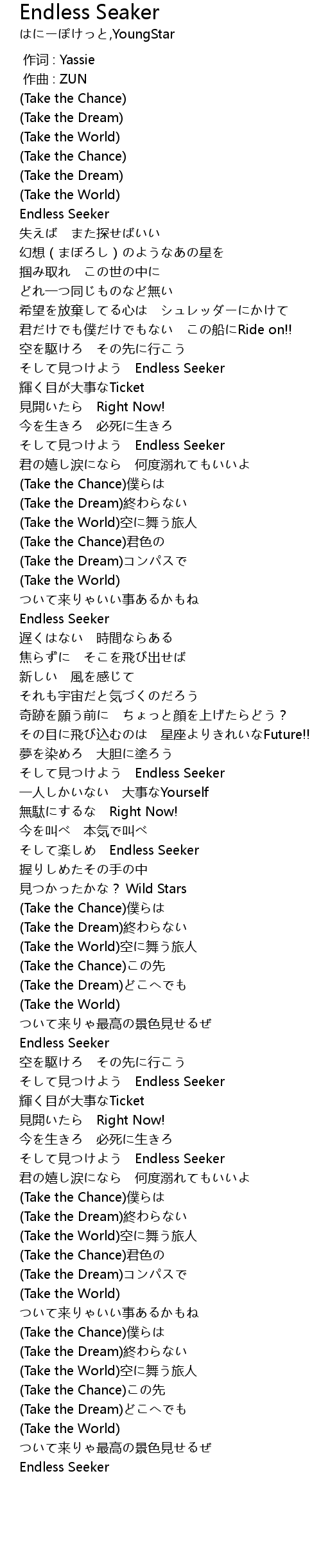 | [04:00.92] | Endless Seeker |
