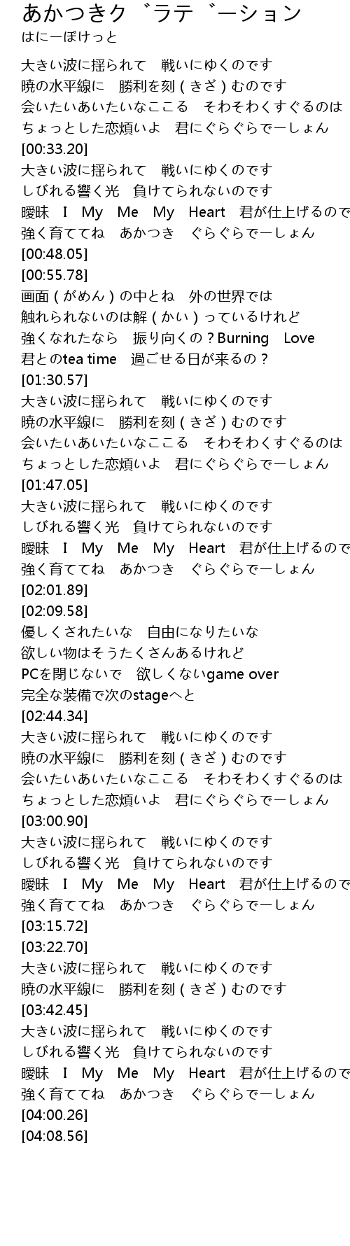 | [03:12.25] | 強く育ててね あかつき ぐらぐらでーしょん |