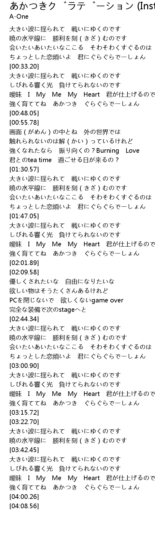 | [03:56.52] | 強く育ててね あかつき ぐらぐらでーしょん |