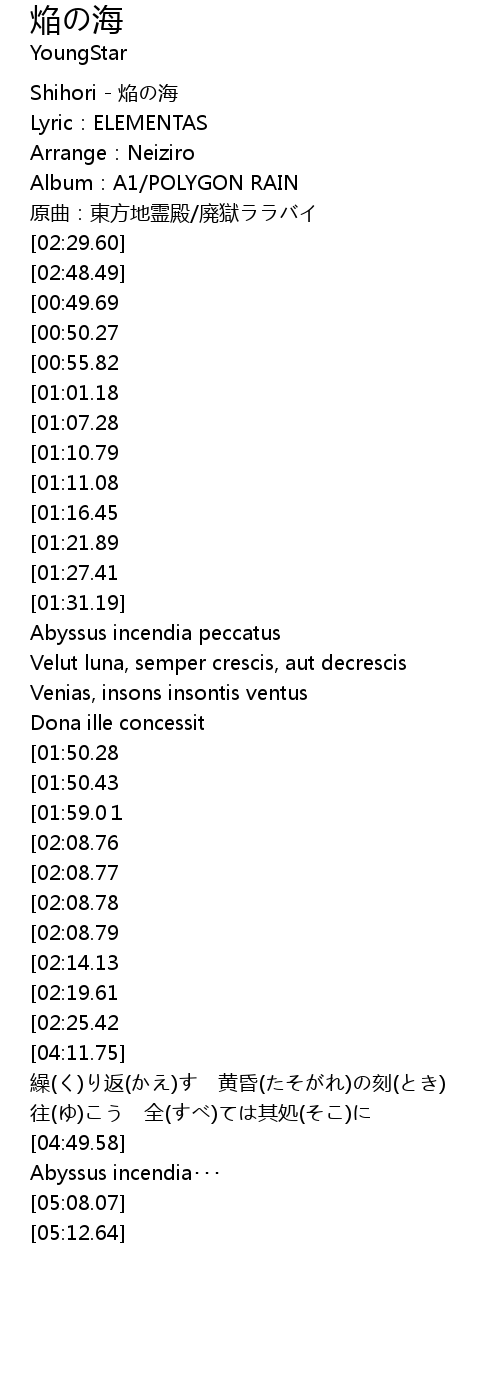 | [00:45.77] | 原曲:東方地霊殿/廃獄ララバイ |