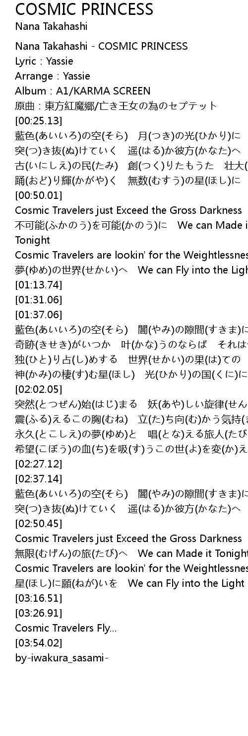 | [00:08.73] | Nana Takahashi - COSMIC PRINCESS |