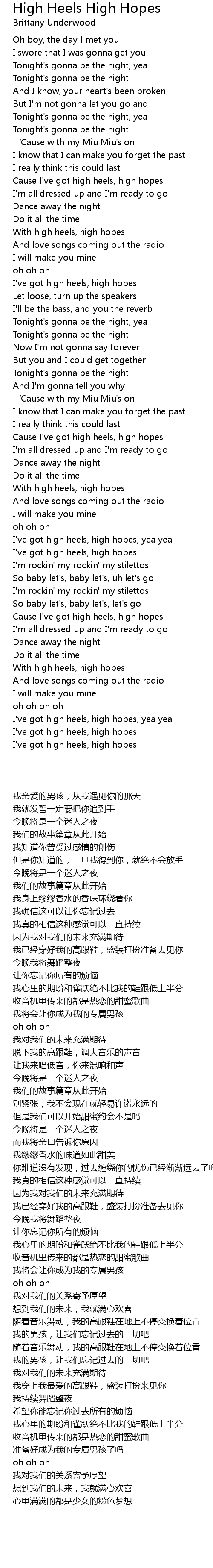 | [00:40.00] | Cause I've got high heels, high hopes |