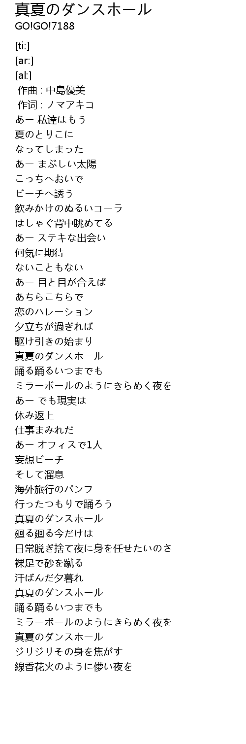| [03:27.36] | 汗ばんだ夕暮れ |