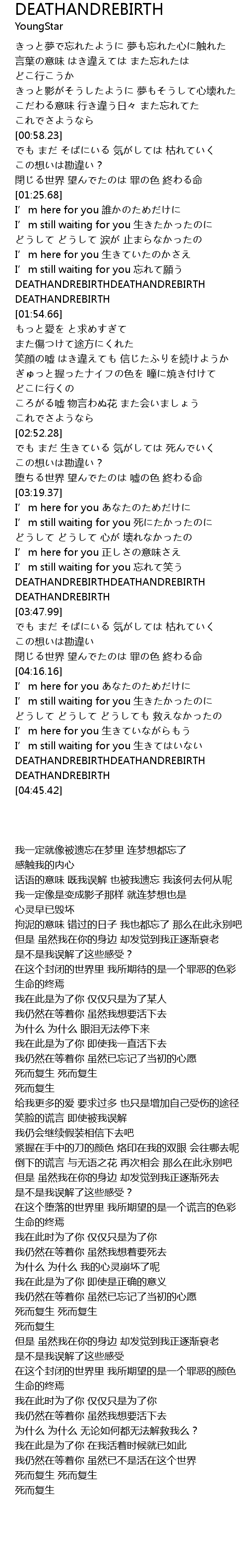 | [04:37.70] | DEATHANDREBIRTHDEATHANDREBIRTH |
