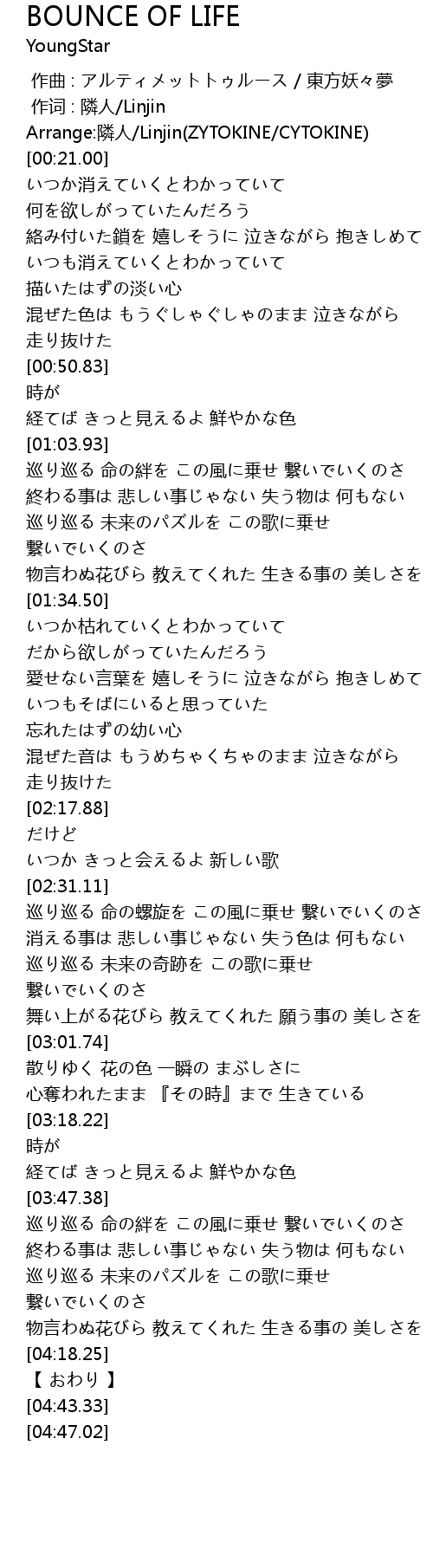 | [00:00.00] | 作曲 : アルティメットトゥルース / 東方妖々夢 |