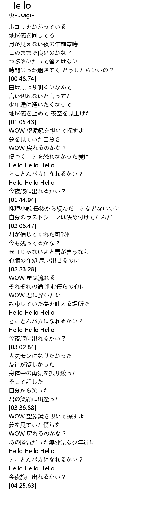 | [02:56.46] | Hello Hello Hello |