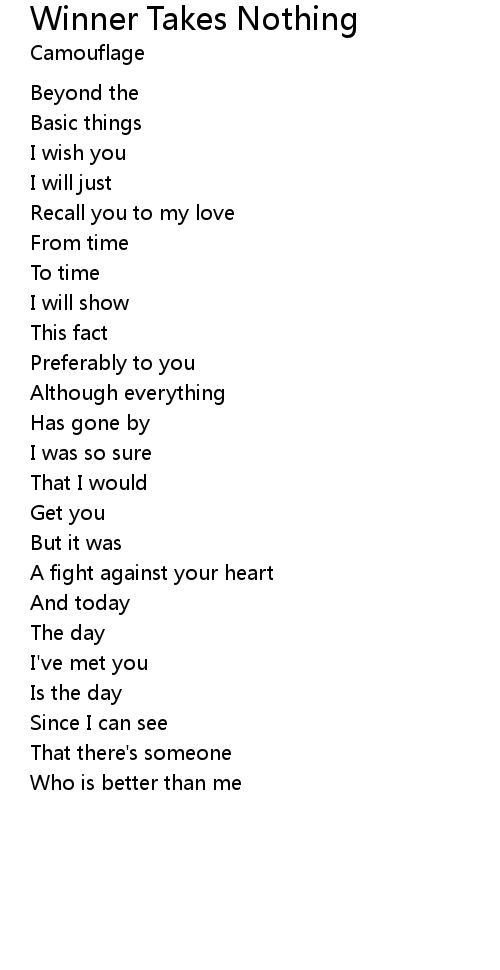 | Song | Winner Takes Nothing |