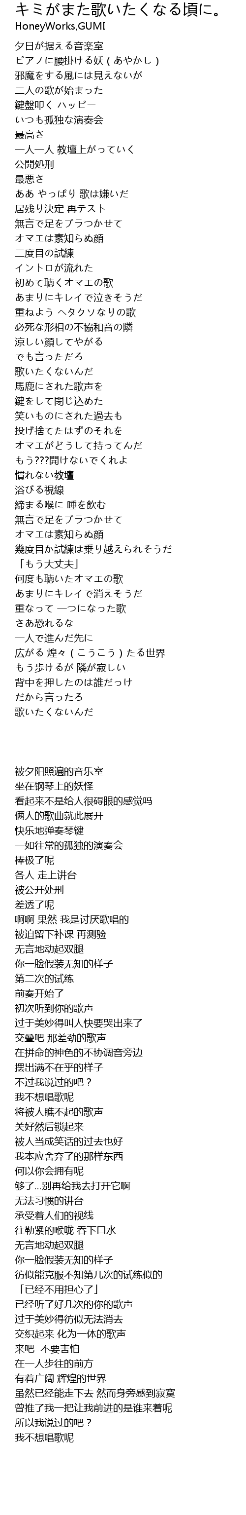 | [00:49.28] | ああ やっぱり 歌は嫌いだ |