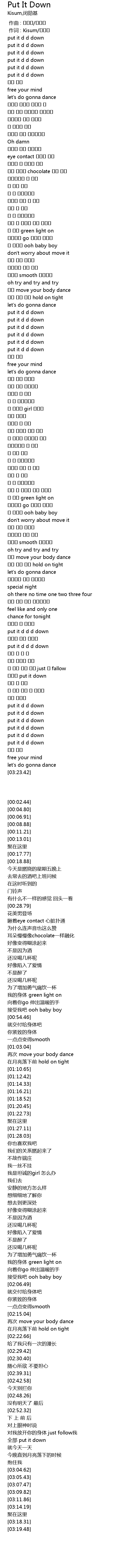 | [00:52.59] | 날 받아줘 ooh baby boy |