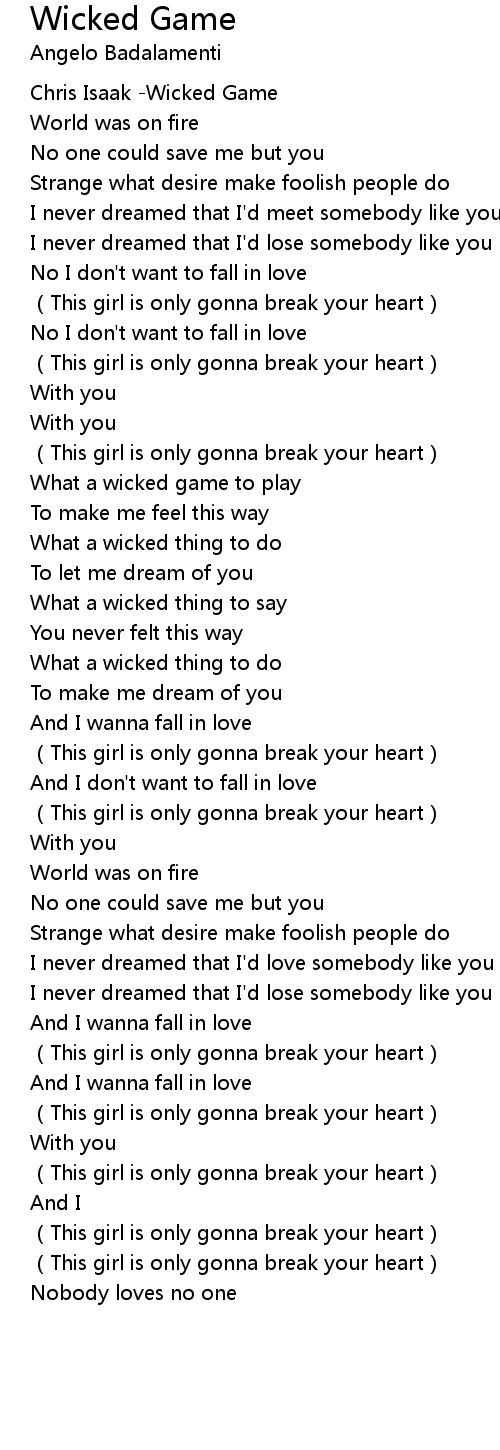 | [01:19.208] | What a wicked game to play |