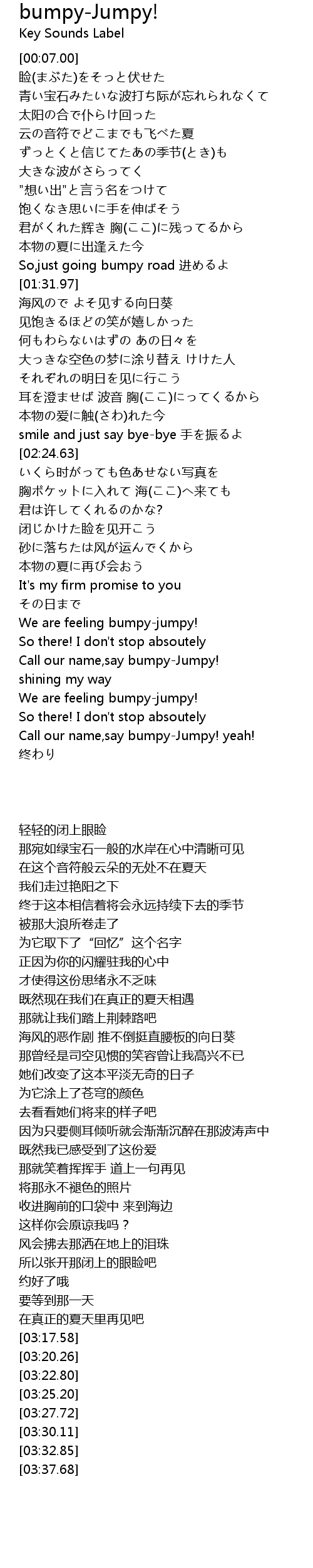 | [03:32.85] | Call our name, say bumpyJumpy! yeah! |