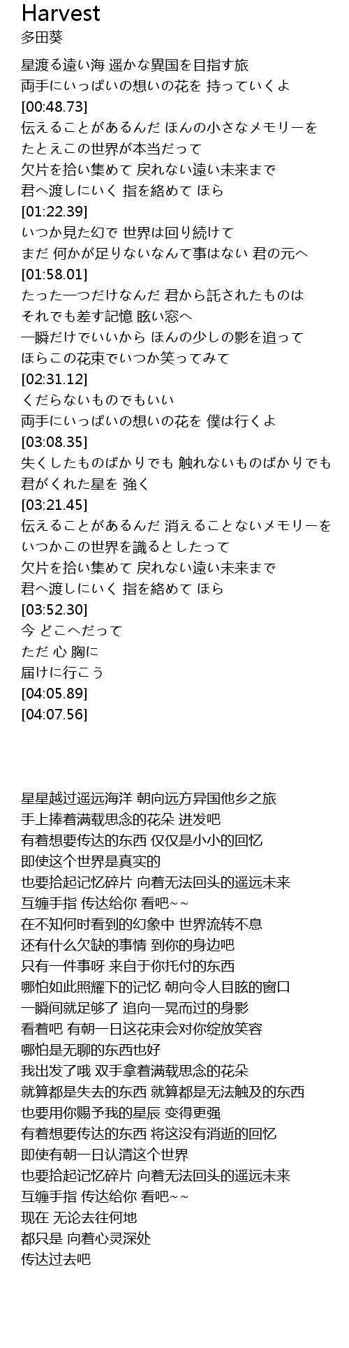 | [00:51.19] | 伝えることがあるんだ ほんの小さなメモリーを |
