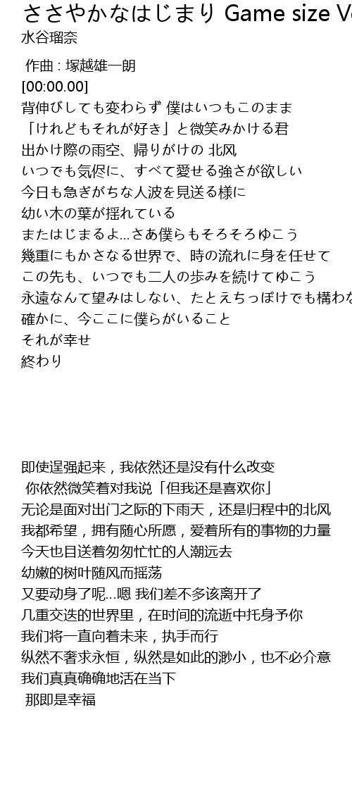 | [00:00.00] | 作曲 : 塚越雄一朗 |