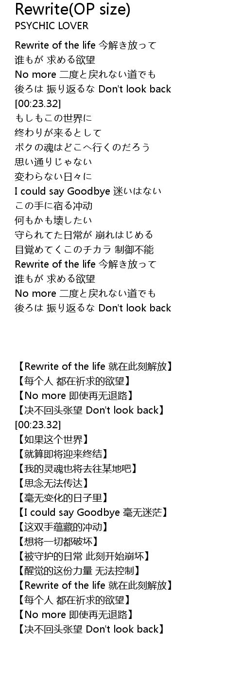 | Song | Rewrite(OP size) |