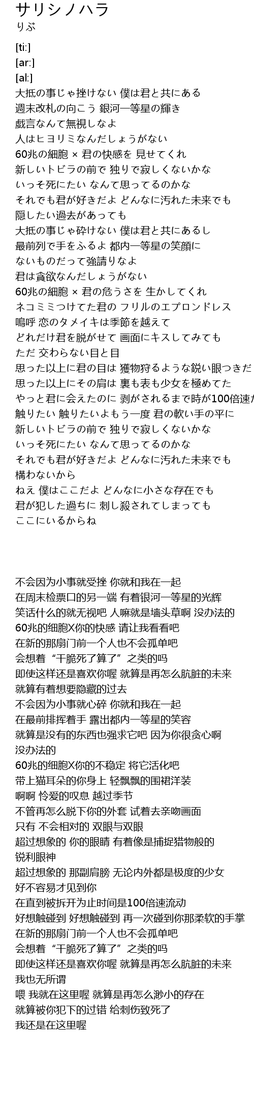 | [00:42.93] | 60兆の細胞 × 君の快感を 見せてくれ |