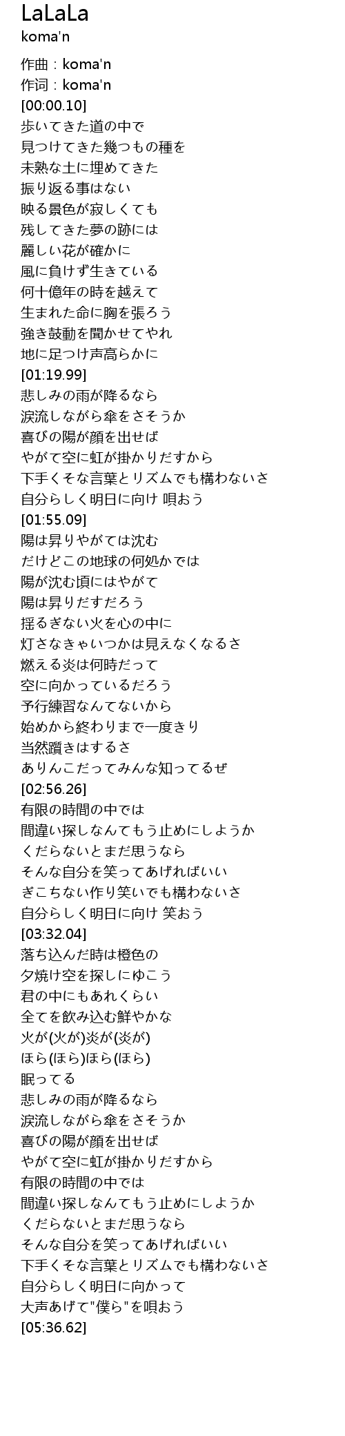 | [03:23.59] | 自分らしく明日に向け 笑おう |